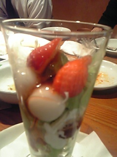 が、実は白玉です。本日の締めくくりは、「もっちりあんみつ和風パフェ」です!この白玉は、少し柔らかすぎるかな?でも、さっぱりしててGOOD!