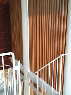 みなさま、こんにちは、立川です。徳島増販企画塾だよりをお訪ねいただきありがとうございます。ついこの間まで食に関連する話題ばかりだったと思えば、ここ2,3日は撮影ネタばかりと、偏った情報流布でごめんなさい。ただ、カタイ話ばかりでも何ですので、業務まわりを中心にしながら「ココア堂の愉快な日常」をおとどけできればと思っております。さて、引き続きわたくしは撮影現場ですが、ちらっと別の現場をお見せします。写真は、2月移転予定の事務所なんですが、、まだチラ見せです。これは階段部分です。題して「ドラマチック階段」だそうで、ここからロマンチックなLOVE STORYが生まれたりするかも、という期待もしています。これから折りを見て、ご紹介していきますね。例のバリのドアも登場します!