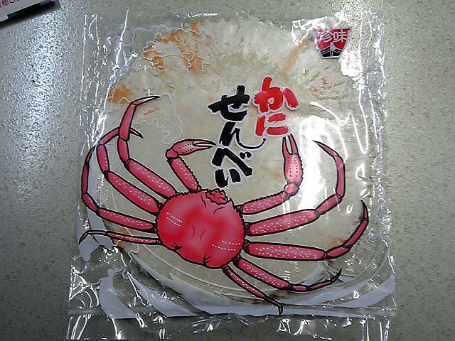 かにせんべい日本海と言えば、カニ。露天風呂で、女湯けむり、日本酒ちびちび・・素敵!でも、どこにも行けない私たちは久美浜のお土産「かにせんべい」でお腹をふくらませています。たった今、差し入れでいただきました。そういえば、ほんの少しカニの風味が・・・