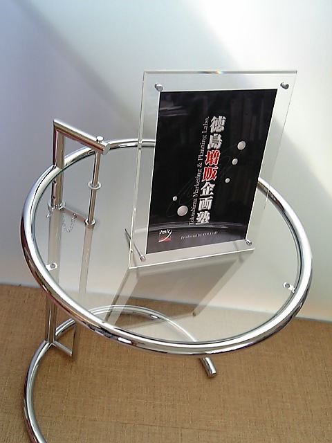 ずっと欲しかったアイリーン・グレイのサイドテーブルをいただきました!ここに、徳島増販企画塾のサインを置いて、っと。よく似合う!!ありがとうございます、アスペック石井さん。
