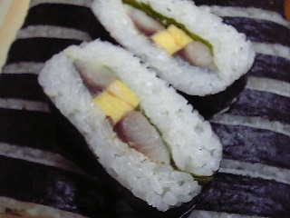 シメサバと紫蘇と卵をのり巻きにした名物「話巻き」は抜群!