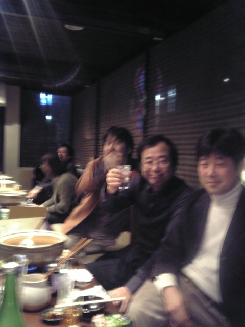 Sionで懇親会してます。遠野のにごり酒でほぼ酔ってます。美味しいお鍋は食べちゃった!