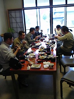 窯元集う!4月29日~5月1日まで藍場浜公園一帯で繰り広げられる「はな・はる・フェスタ2005」の伝統工芸コーナーを支えてくれる大谷焼の皆さん。3日間とも御成婚広場にて無料体験を実施してくれます。毎年、事前の打ち合わせとスケジュール確認のために「ちょっとよっ亭」でランチ会議。若手ばかりの集まりなので、ざっくばらんに話は進みました。今年も晴れれば、来場者は30万人を超えるはず。森さん、矢野さん、田村さん、瀧野さん、森さん、大西さん、よろしくお願いいたします。