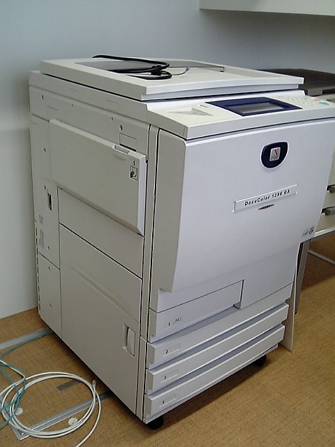 マシン登場!長年連れ添ったカラープリンターにさよならして、導入したのがZEROX「Docu Color 1256」です。ただ今ゼロックスマン3人でセットアップ中。印刷に限りなく近いといわれるこの機種への期待は高いぞ~~。A Colorに始まったcocoadのゼロックスの歴史に、また新たな一ページが刻まれた記念の日でもある!また末永くよろしく・・・