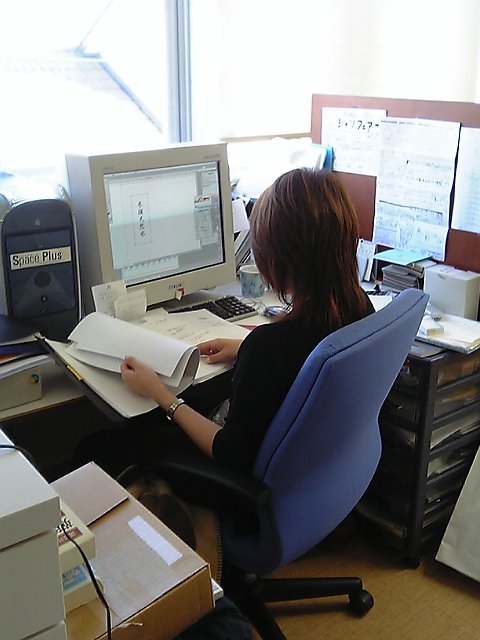 穏やかな週末の風景このところ慌しかったココア堂ですが、本日・土曜日はほとんどのスタッフがお休みとあって、静か。チラッとウキツくんも顔を出したのですが、そそくさと帰っていきました。明日メガネを新調するとかで、ウキウキしてます。先日相談されたのですが、全員イマイチな反応・・・後日、新しいメガネで浮かれる彼をご紹介しますね。画像は10日のプレゼンに向けて、追い込みに入った大上さん。たった今、伊東屋さんから皮サンプルと成型サンプルが届きました!