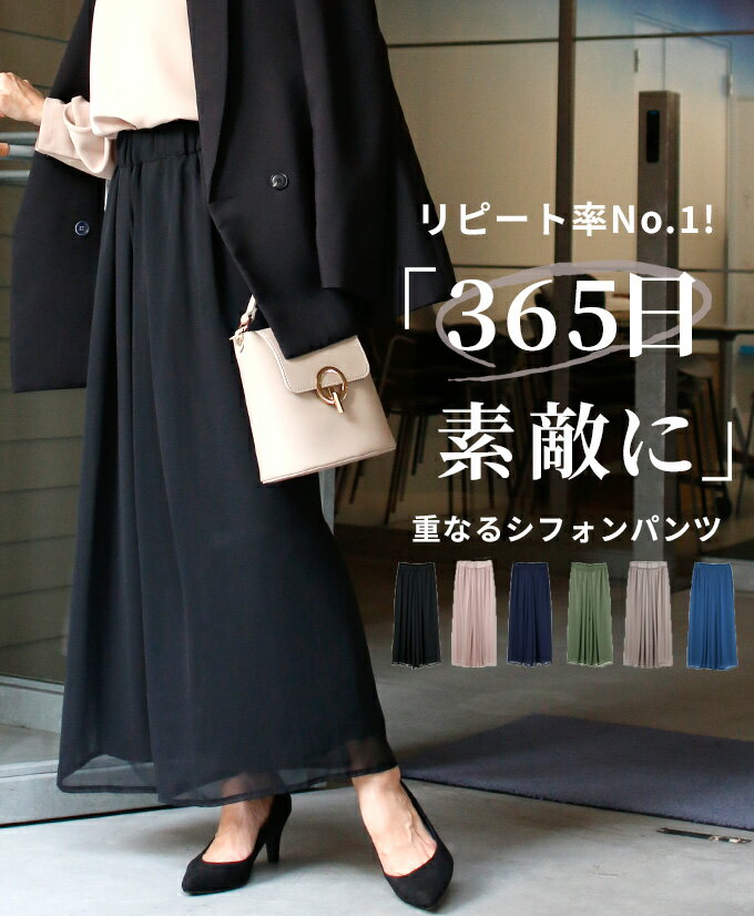 シフォン素材のワイドパンツ