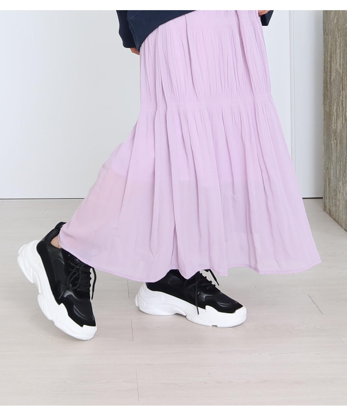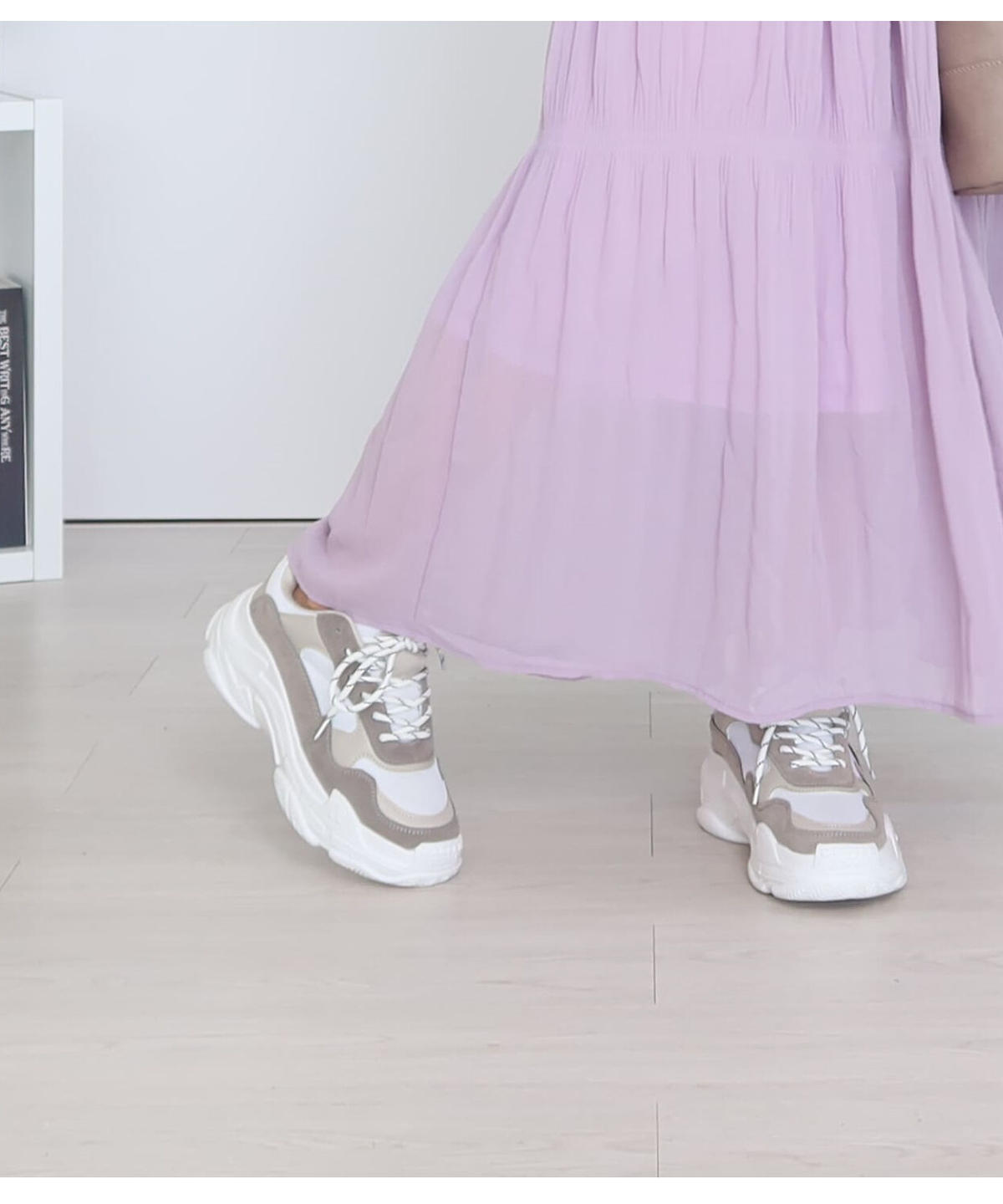 ダッドスニーカーは、タイトスカートのカジュアル外しに使うのが可愛すぎます😍