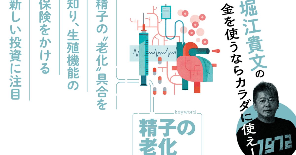 カラダは究極の資本であり、投資先である。そう断言する堀江貴文氏が、最先端の医療と美容情報を惜しげもなく伝授する本連載。第48回は「精子の老化」。実は、多くの男性は自らの精子の状態を知る機会すら持たないのが現実。そんななか、登場したのが「精子凍結みらいバンク®」。自宅で精子を採取し、将来に備えて凍結保存するこの仕組みは、いわば“生殖機能の保険”だ。サービスを立ち上げたHDXセルバンク代表・向井徹氏に話を聞く。