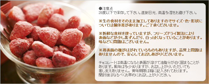 いちごの甘酸っぱさに、ホワイトチョコのサクッと不思議な食感。絶妙ハーモニーが楽しめるコチラのいちごチョコは、フリーズドライの苺に、独自技術でクリーミーなホワイトチョコをじんわり、じんわり染み込ませています。だから、見た目は苺で、歯ごたえもサクッとしているのに、お口の中ではクリーミー。独特の食感をお楽しみいただけるのです。