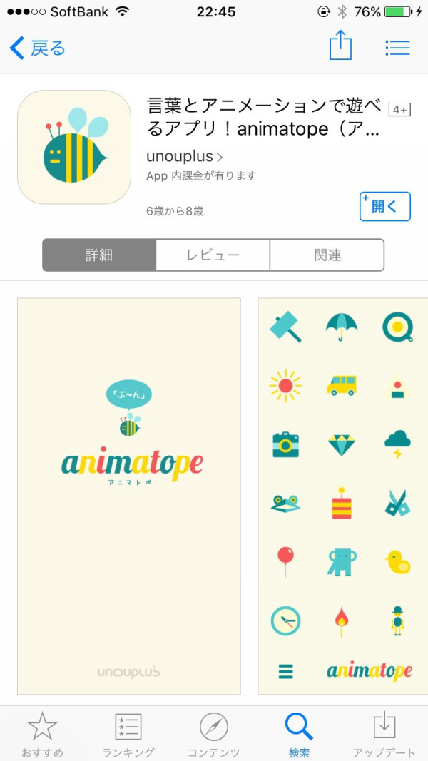 アイコンとそれに対応するオノマトペを親が録音して触りながら学べるアプリ