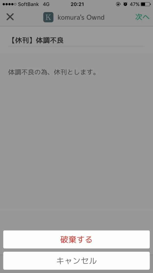 2.上記の破棄しますかアラートは「変更内容を破棄しますか」アラートじゃないと記事消すのでは恐怖