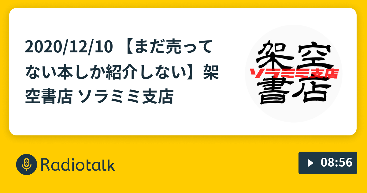 2020/12/10 【まだ売ってない本しか紹介しない】架空書店 ソラミミ支店【まだ売ってない本しか紹介しない】架空書店を耳から楽しめる、それが架空書店ソラミミ支店です。まだ売ってない本のことなら、ぜひこちらでどうぞ!#架空書店 #ソラミミ支店#予約受付中 #新刊 #本 #予約 #読書 #読書好きな人と繋がりたいradiotalk.jp