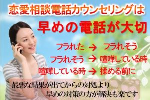 一人で片思い恋愛を考えると、焦り、判断ミスで片思いのチャンスを失います。恋愛電話カウンセリングを受ければ、そんなことは起きません。