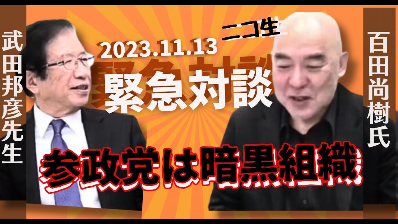 昨夜、武田邦彦は百田尚樹との対談で、参政党に対する反対の姿勢を再度表明しました。全編は有料ですが、わずか1分の「チラ見せ」だけでも、神谷宗幣に騙されたとはっきり述べていることから旗幟は鮮明であり、これだけでも十分です。