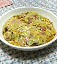 その上から炒めた具材を入れて、炊飯器の機能「炊き込み」で炊く。