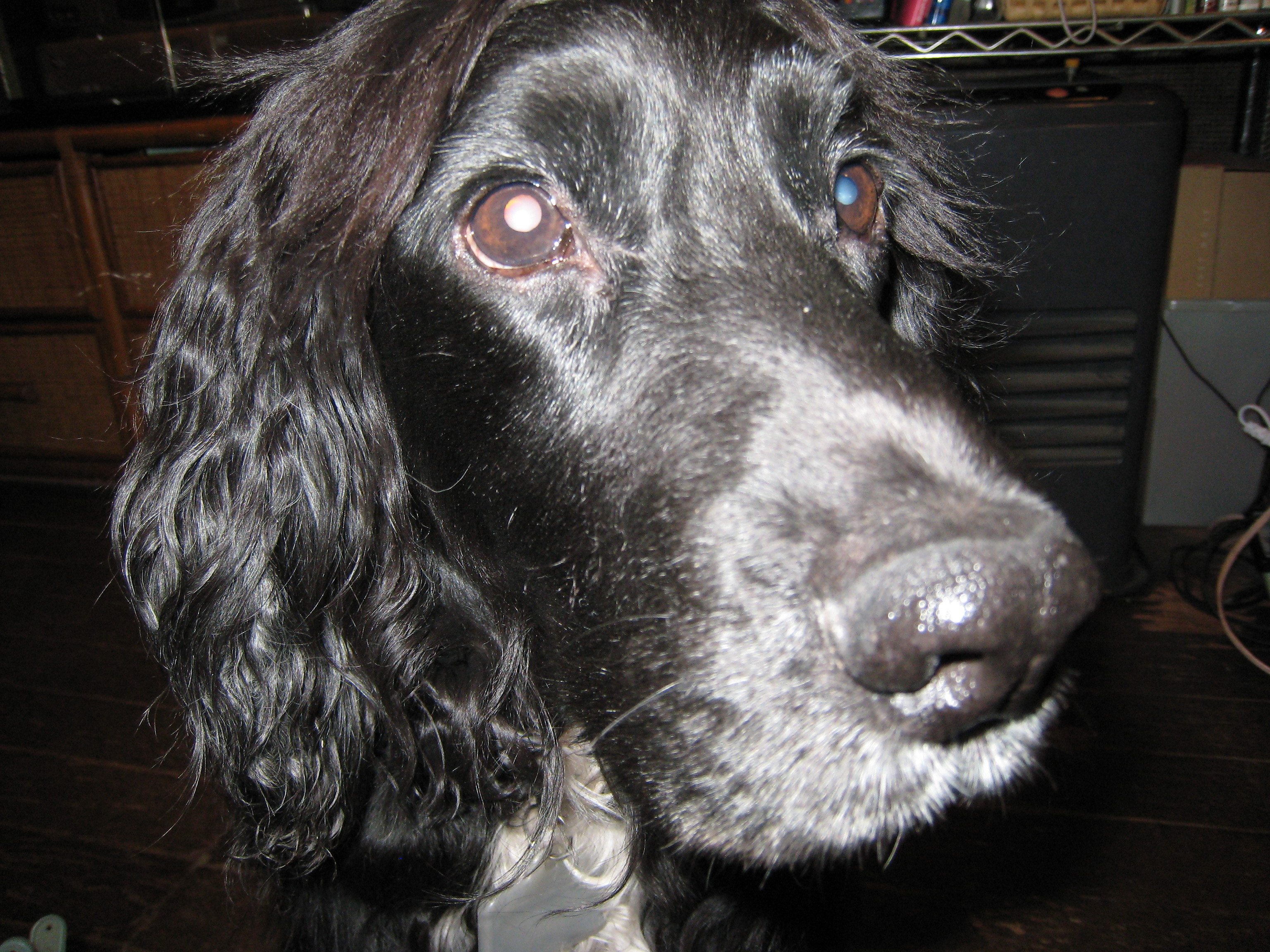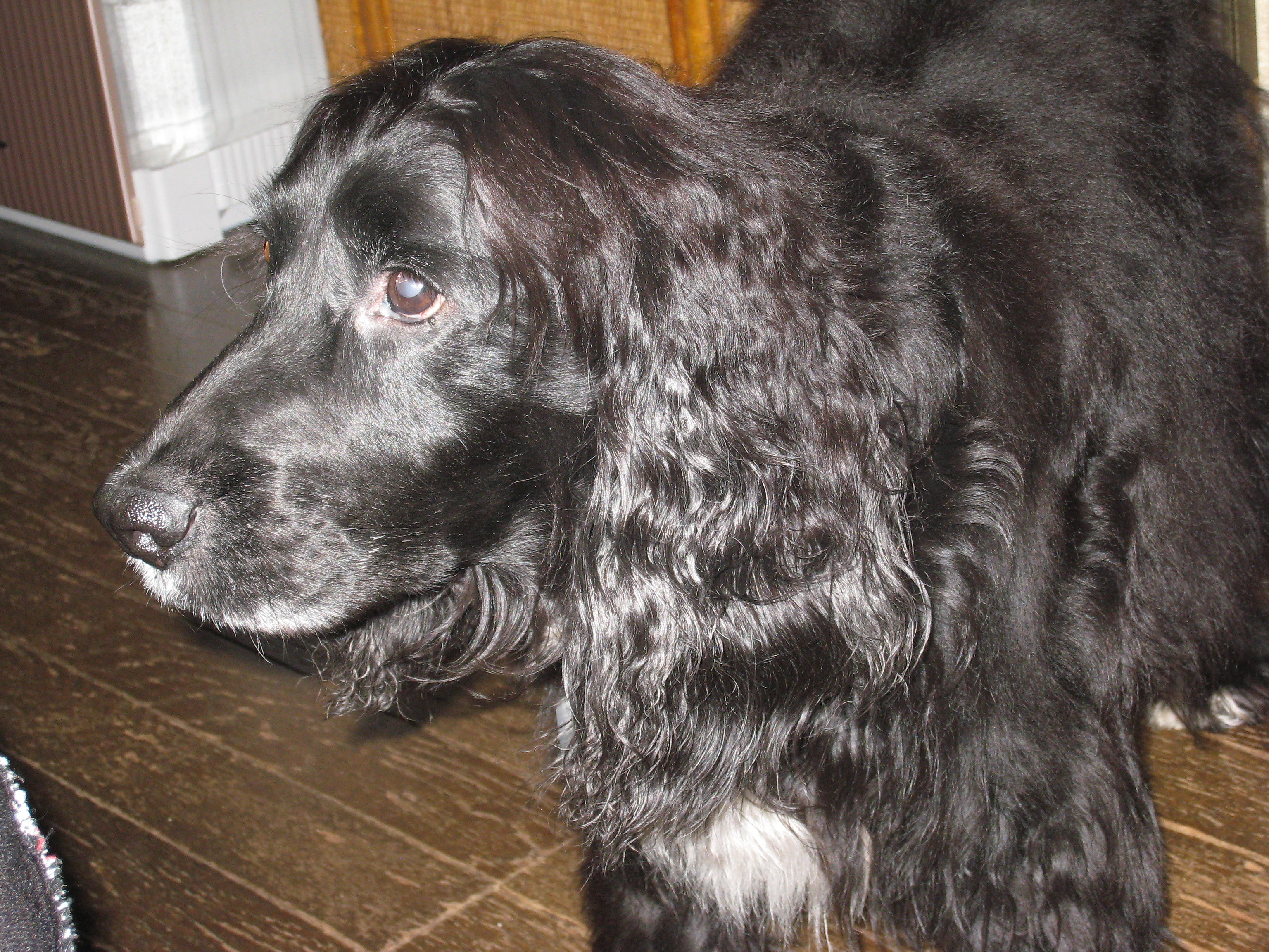 わたしの父親と同じ胸と足先だけが白い-黒のイングリッシュ・コッカースパニエルです。 お父さん、お母さん、お兄ちゃん、お姉ちゃん、み~んな このCooおじさんがだ~い好きで、とってもとっても愛していたそうです![]()
