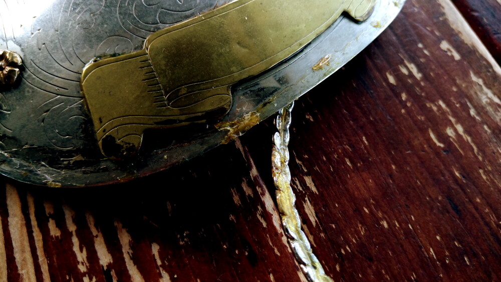 2026年01月24日(土)・・・バックル修理、2026 しばらく壊れたまま放置していた、お気に入りのバックル。 浮いた部分を完全に剝がして、治すことにしました。 エポキシを剝がすのは大変でしたが、時間をかけてカッターナイフで剥がしました。 やっと、残ったエポキシを剥がし終えました。 ガソリンで、丁寧に脱脂しました。 次回の修理のことを考え、ボンドの多用途SUを今回は使います。 両面に薄く塗って、10分ほど放置して・・・ しっかり固定しました。