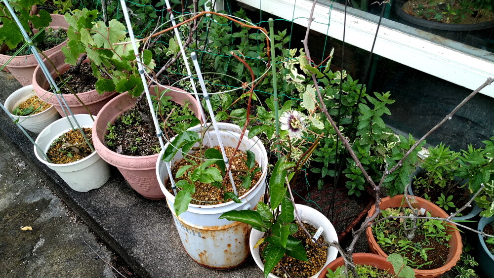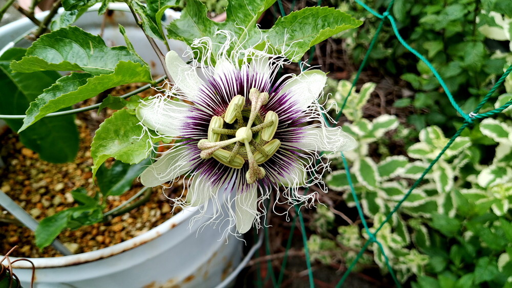 今年初めての、パッションフルーツの開花です。