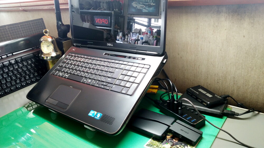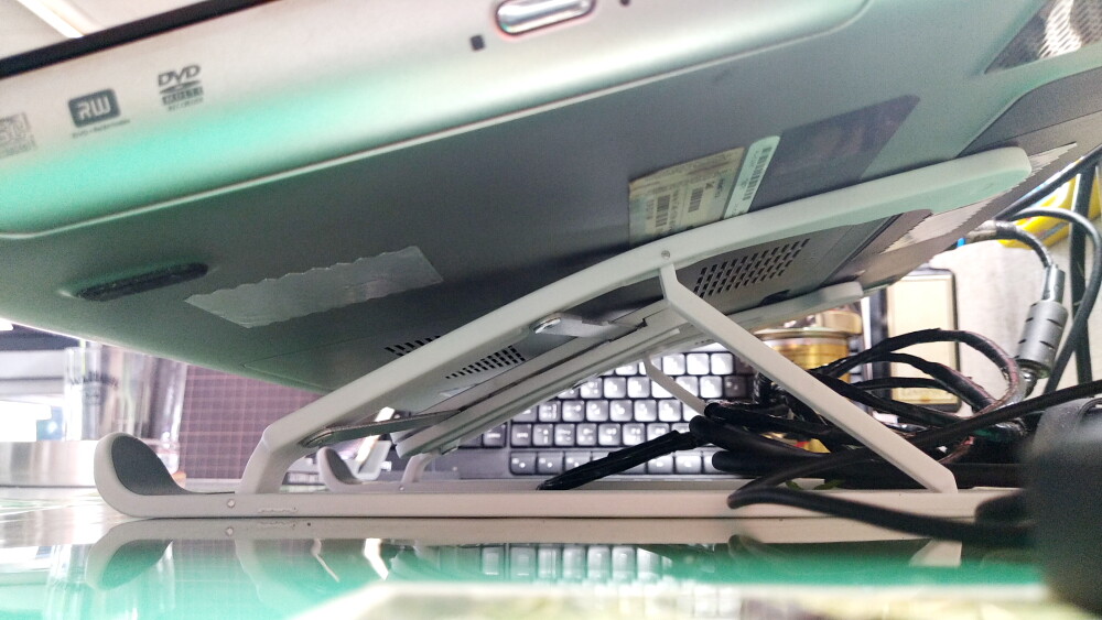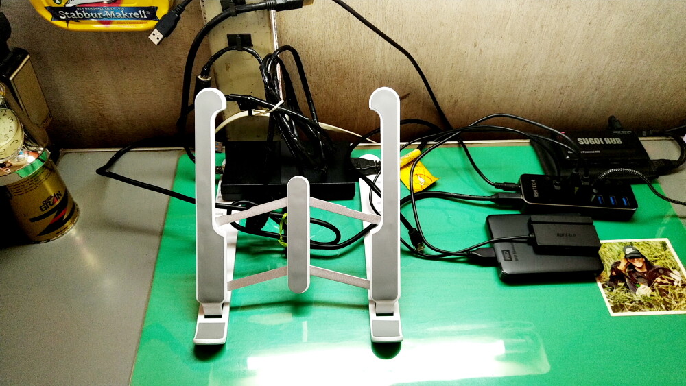 2024年08月10日(土)・・・パソコンスタンドを購入したのですが・・・ PCスタンドを買いました。 今までも、木材を使って立たしていたのですが・・・ これなら、掃除も簡単そうです。 で、最初は立ってくれたのですが・・・ 17.2インチは大き過ぎるようで、角度が変わってきました。 重さに耐えきれず、曲がってしまったようです。 安定感は今一つですが、逆に風通しは良さそうです。