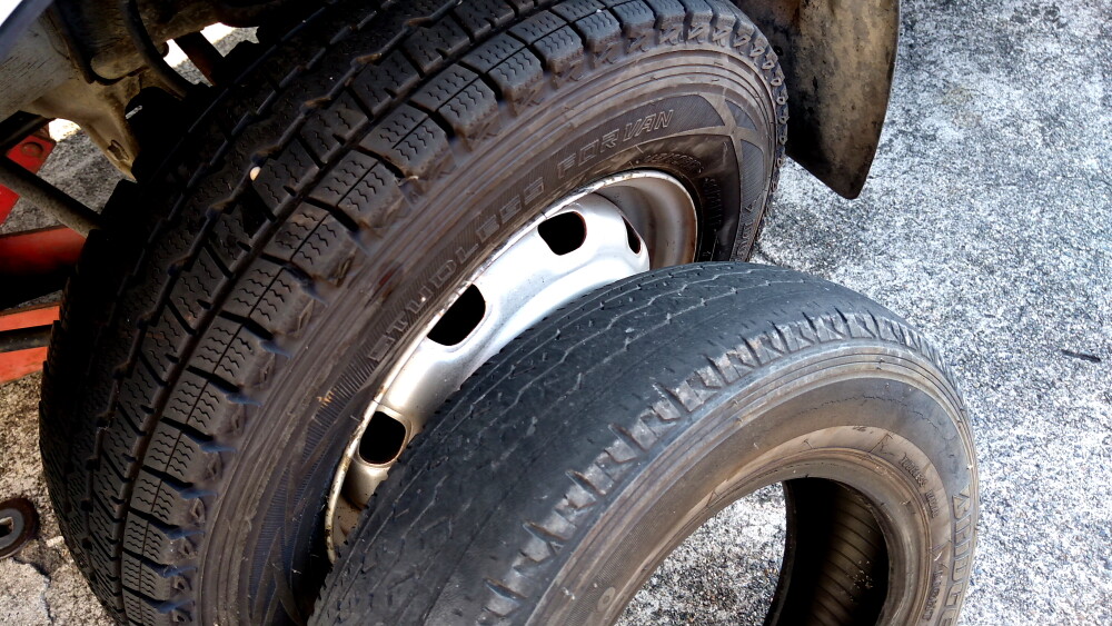 左前タイヤの片減りに気づいたので、タイヤ交換しました。