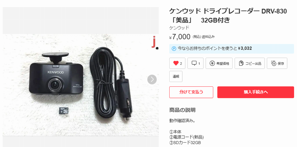 2024年12月11日(水)・・・ケンウッド ドライブレコーダー DRV-830 ネットの拾い読みで偶然見つけた、画像の綺麗なドラレコDRV-830。 ドラレコ自体には興味がなかったのですが、綺麗でぶれない車載動画を撮りたかった ので、メルカリで購入しました。