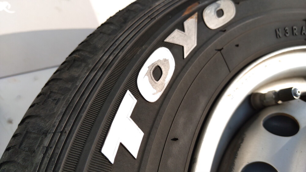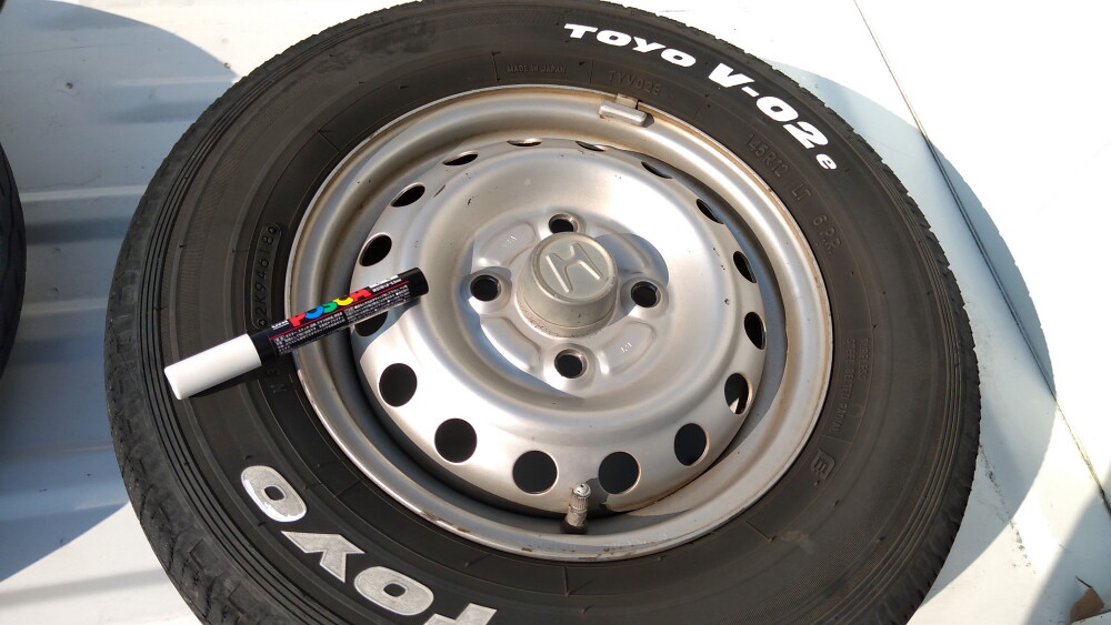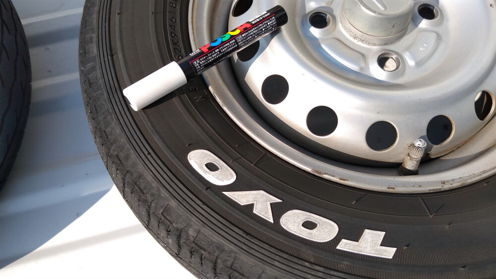 HA7用の夏タイヤのホワイトレターを、初めて塗り直しました。