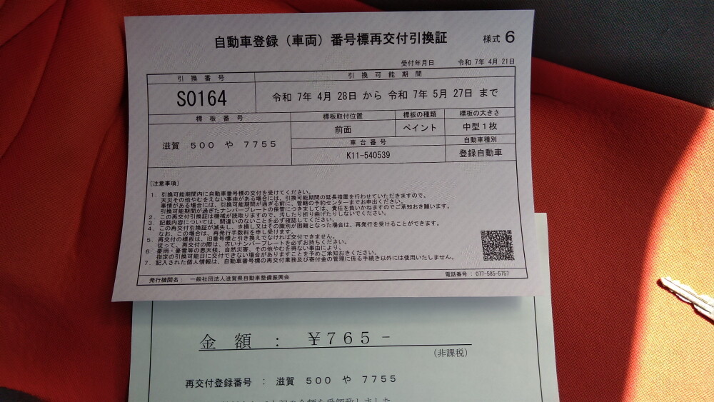まず最初に、壊れたマーチのフロントプレートの再発行の手続きをしました。