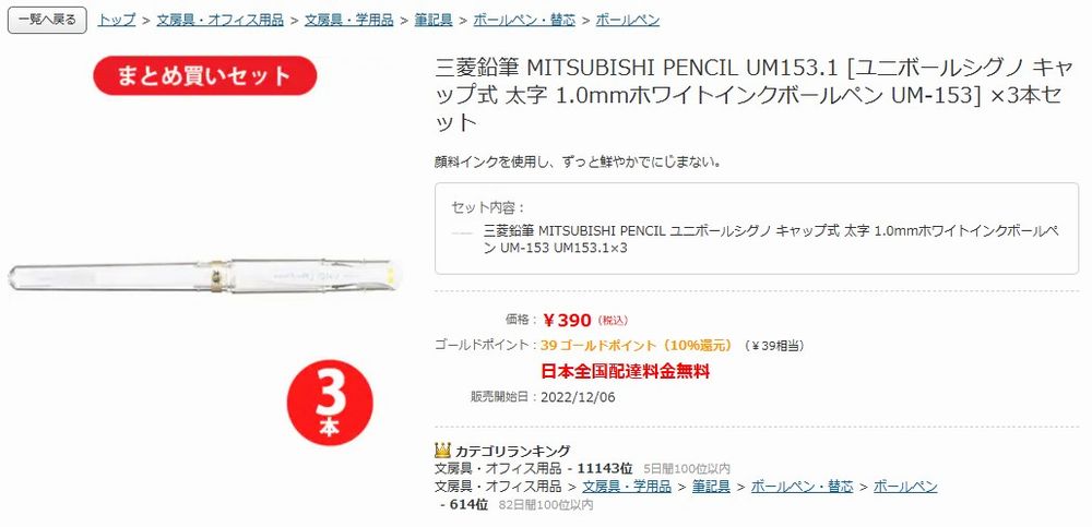 ホワイトペンがかすれてきたので、新しいのを購入することにしました。