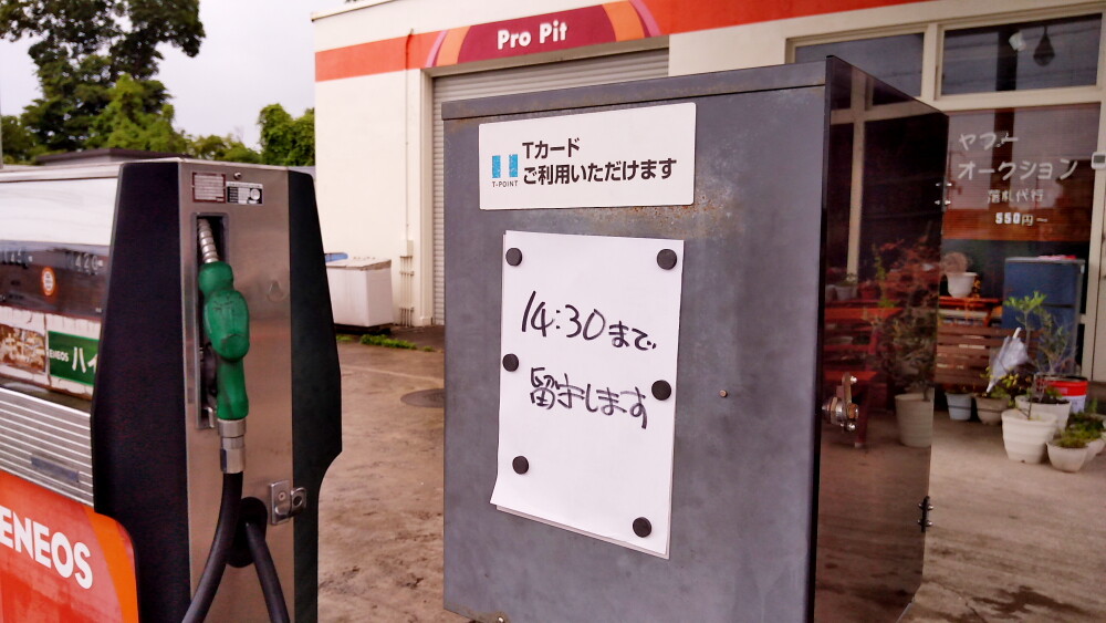 2025年06月10日(火)・・・25分閉店 スタンドから10分ほど離れた場所で、ガス欠したとの電話。 1人なので行けませんとお断りしたものの、なんと閉店後でもOKとのこと。 さすがに困ってるひとを18時まで待たすことも出来ず、スタンドを閉めて 配達することにしました。