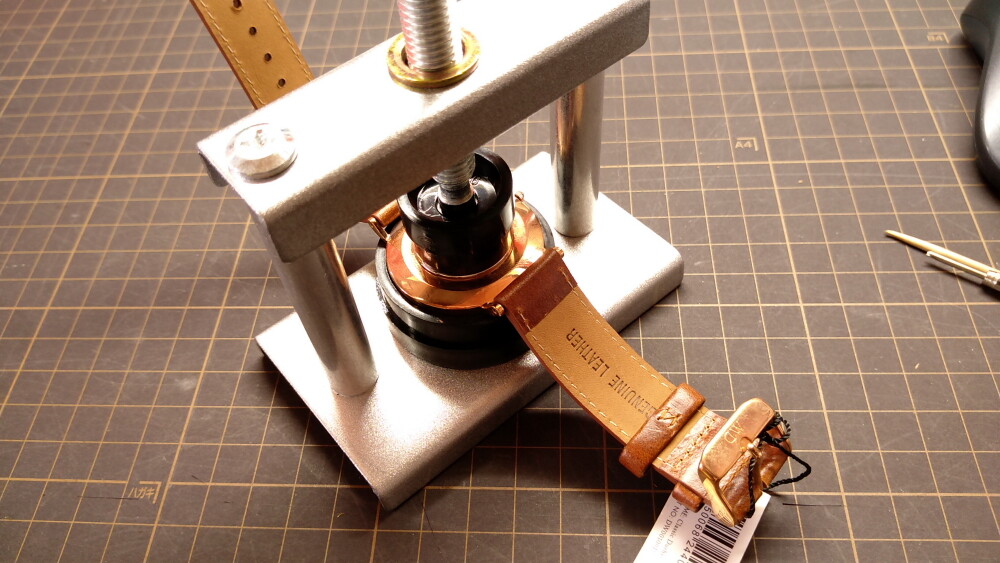 本日4本目の電池交換は、革ベルトの色が気に入って購入した36㎜の白&金モデル。