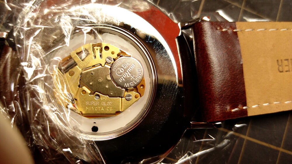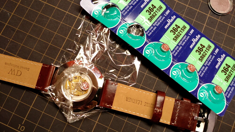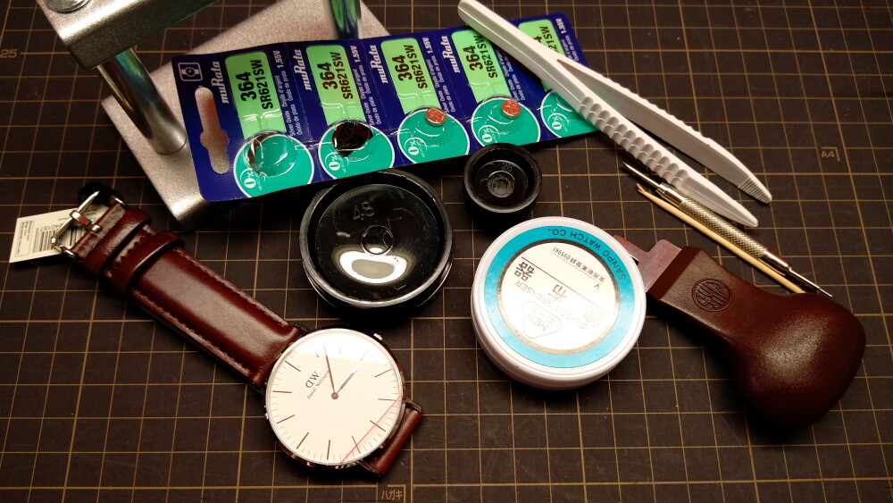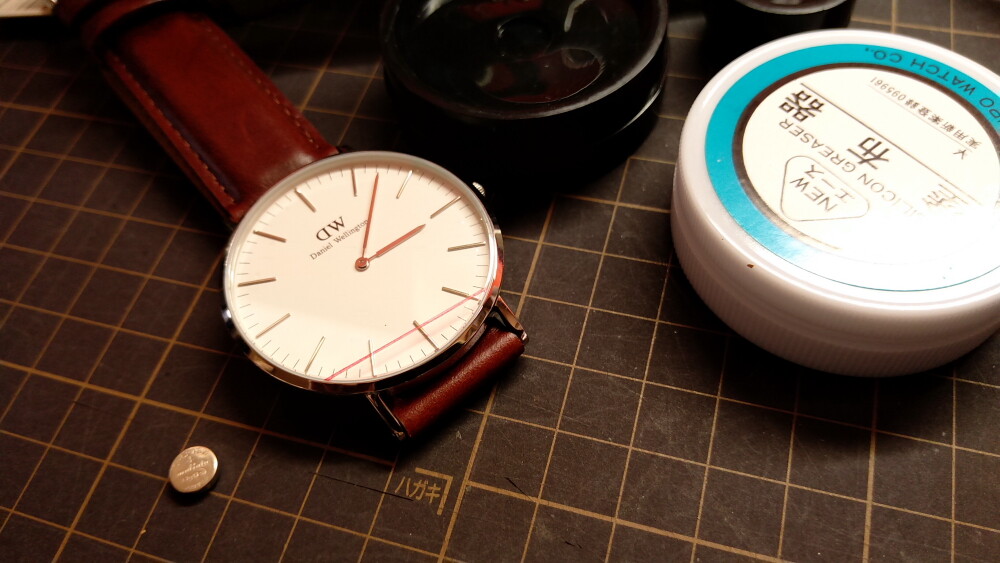 2025年06月12日(木)・・・ダニエルウェリントン、電池交換9本目(新品40㎜、白&金) 本日5本目の電池交換は、1番最初に購入した白&銀の40㎜。 裏蓋をこじ開けます。 パッキンをグリスアップ。 電池を交換。 裏蓋しめ器で、しっかりはめ込みます。 電池交換、終了です。
