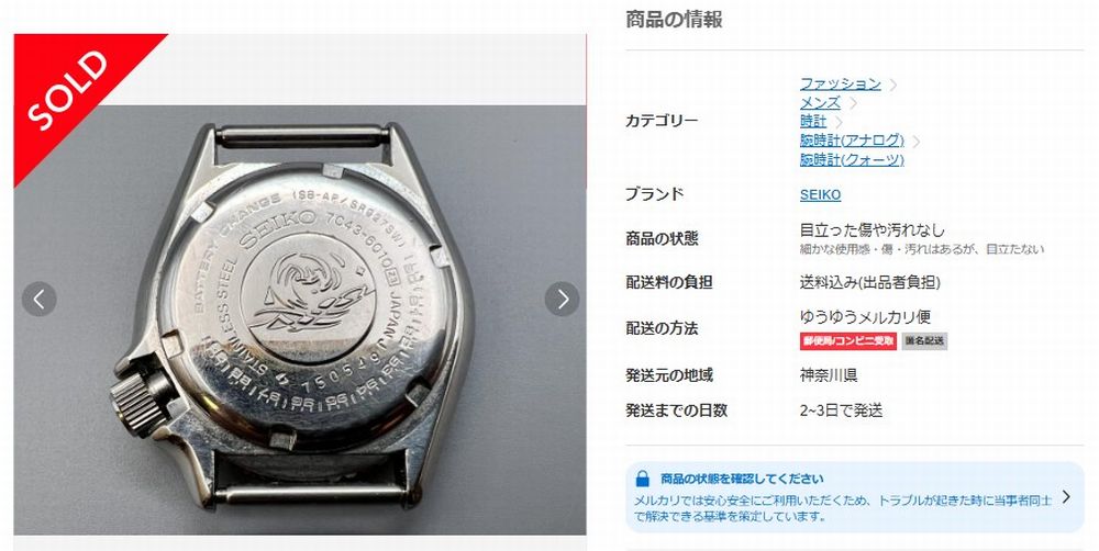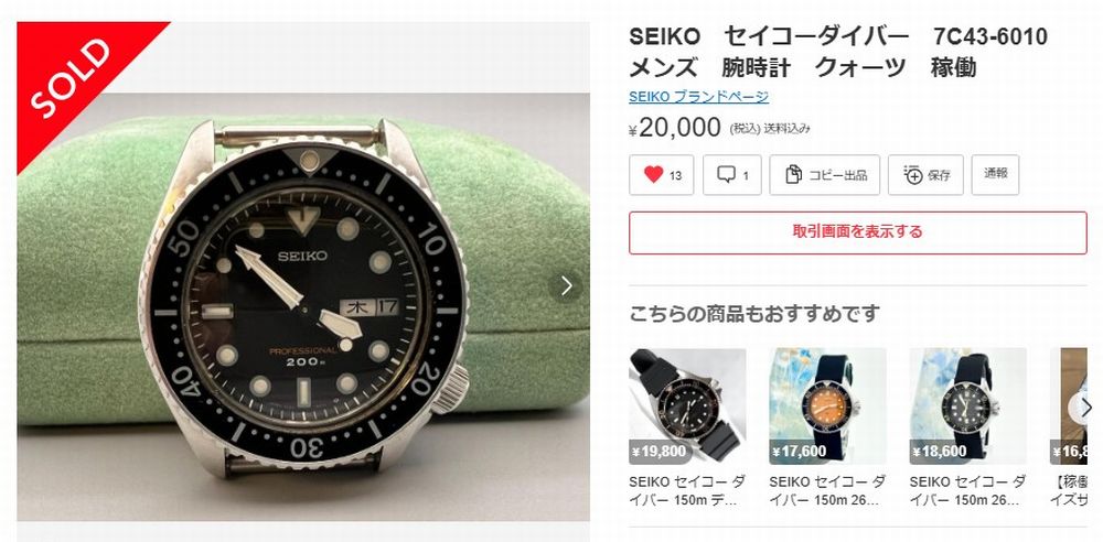 2025年08月29日(金)・・・SEIKOダイバー7C43-6010、購入 ずーと探していた、球面風防のミドルサイズSEIKOダイバー。 25,000円で超美品が出てるのを見つけたので、交渉して20,000円で購入しました。