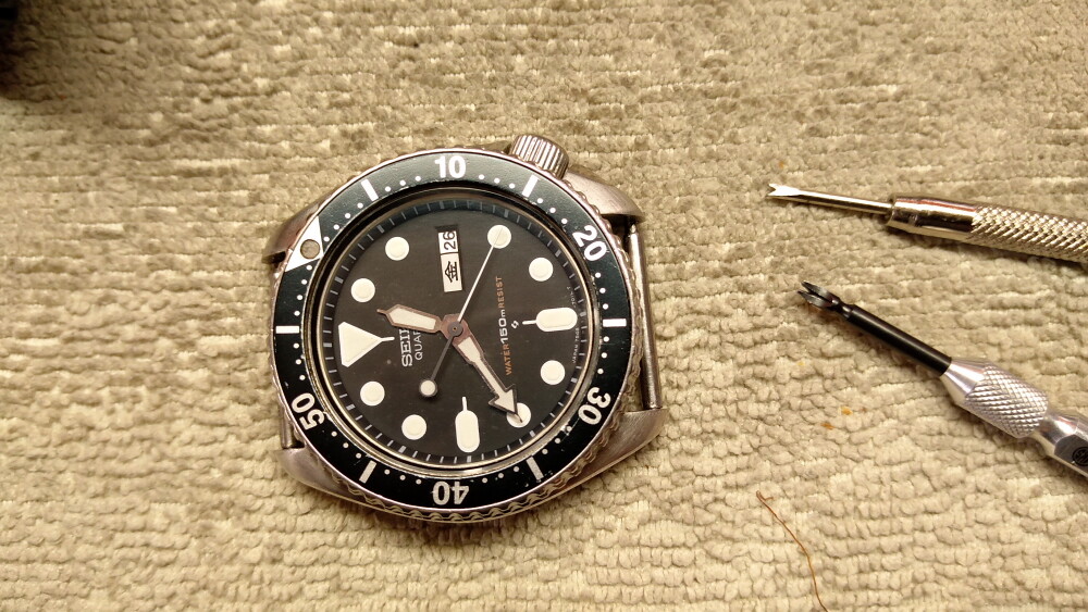 新しいベルトを装着した、SEIKO7548-7000。