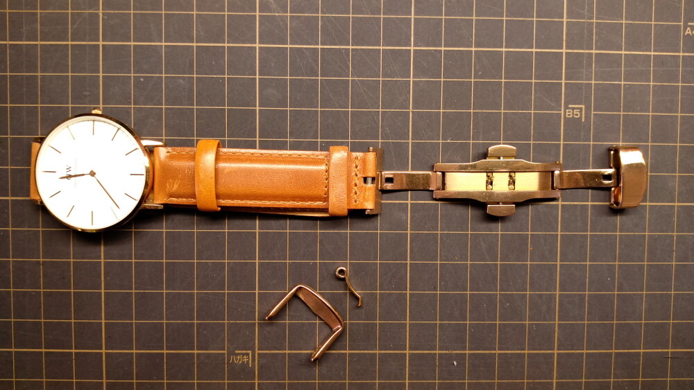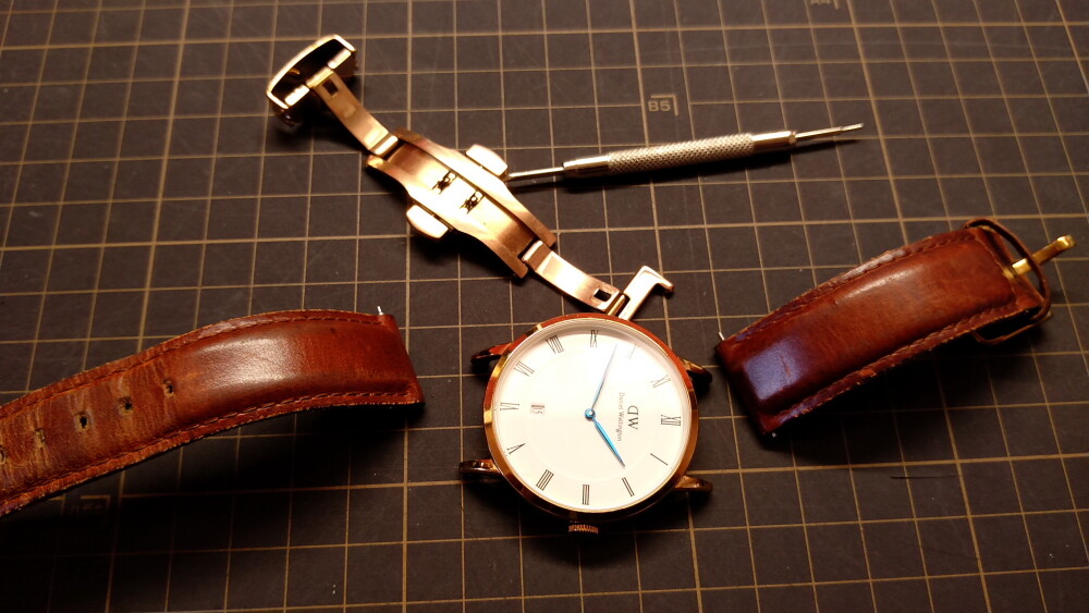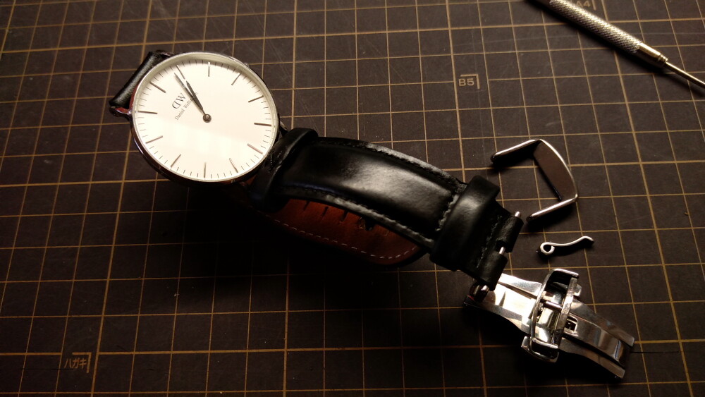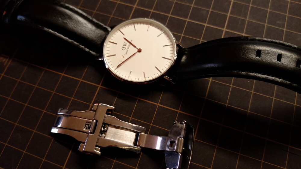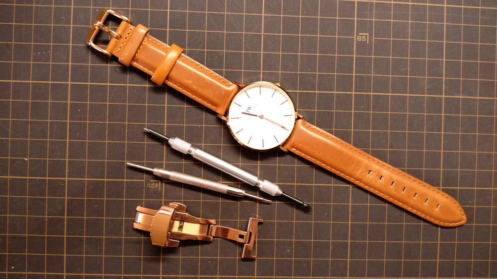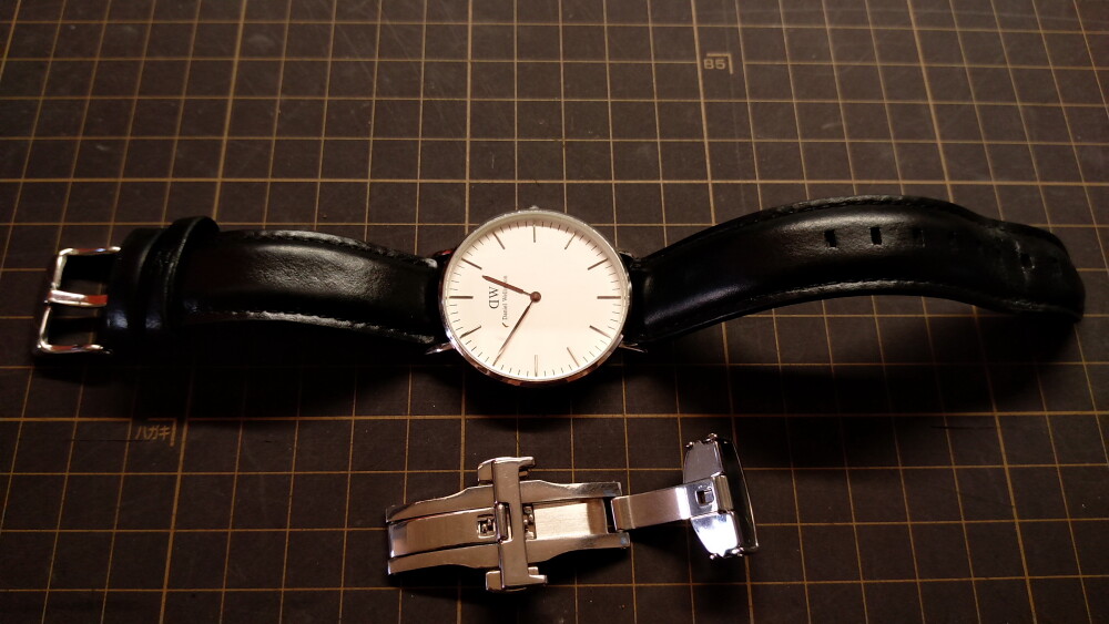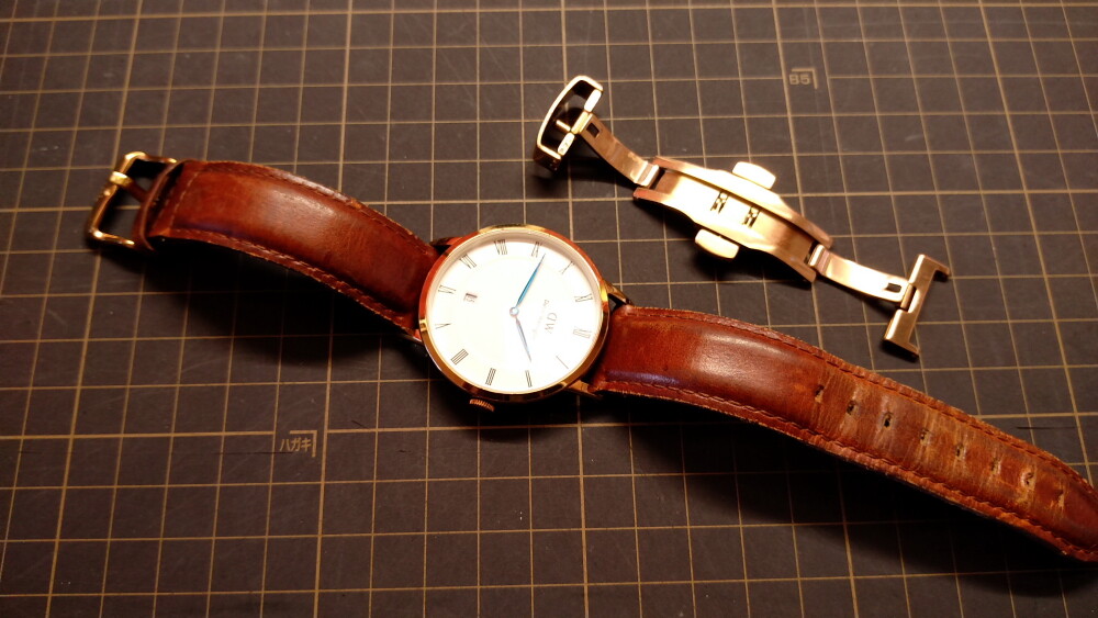 2025年07月26日(土)・・・DW4本、Dバックルに交換 昨日、Dバックルが届いたのでさっそく交換することにしました。 まずは、白&金(茶ベルト)36㎝からです。 次はたっちゃんの、白&銀(黒ベルト)。 3本目は、新品のダッパーです。 今日の最後の交換は、古いほうのダッパーです。