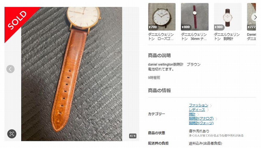 2025年06月13日(金)・・・ダニエルウェリントン(36㎜、白&金、茶ベルト)、購入 2本が偽物だった、36㎜白&金のダニエルウェリントン。 激安価格で、同タイプの中古を購入してみました。 傷や汚れありですが、革ベルトの状態は良さそうです。
