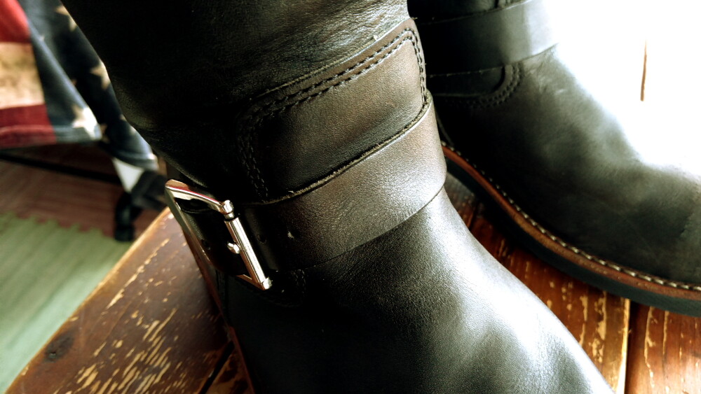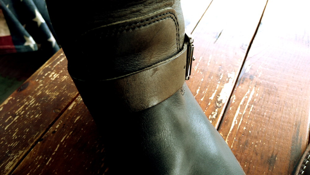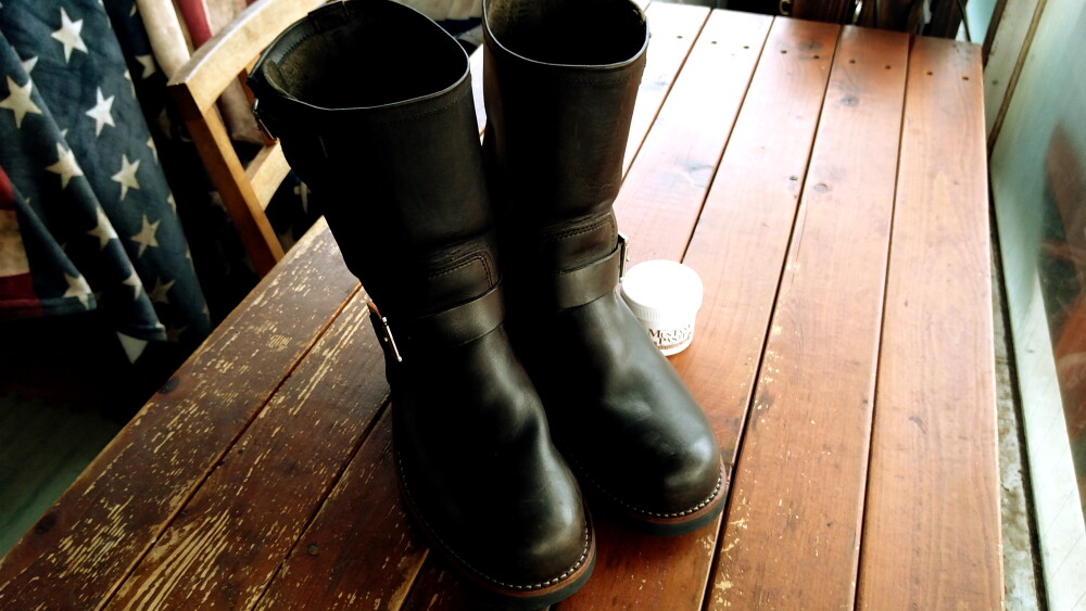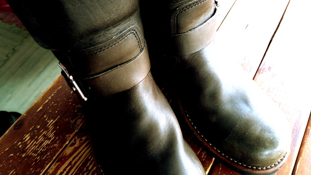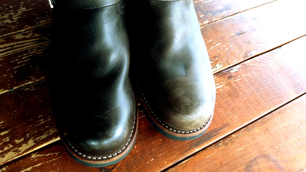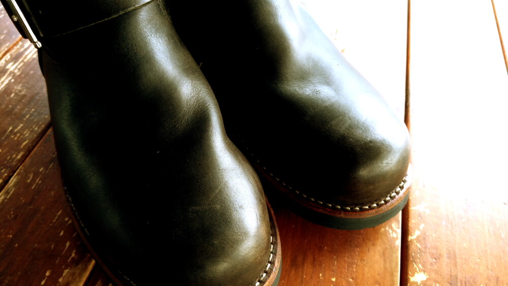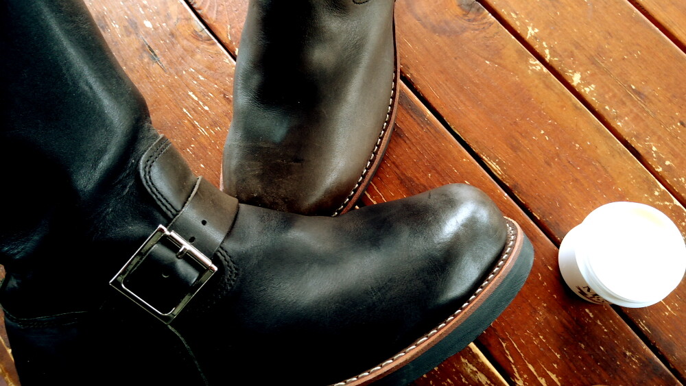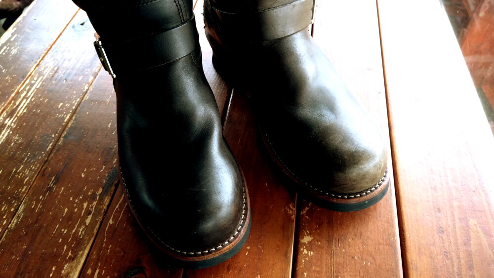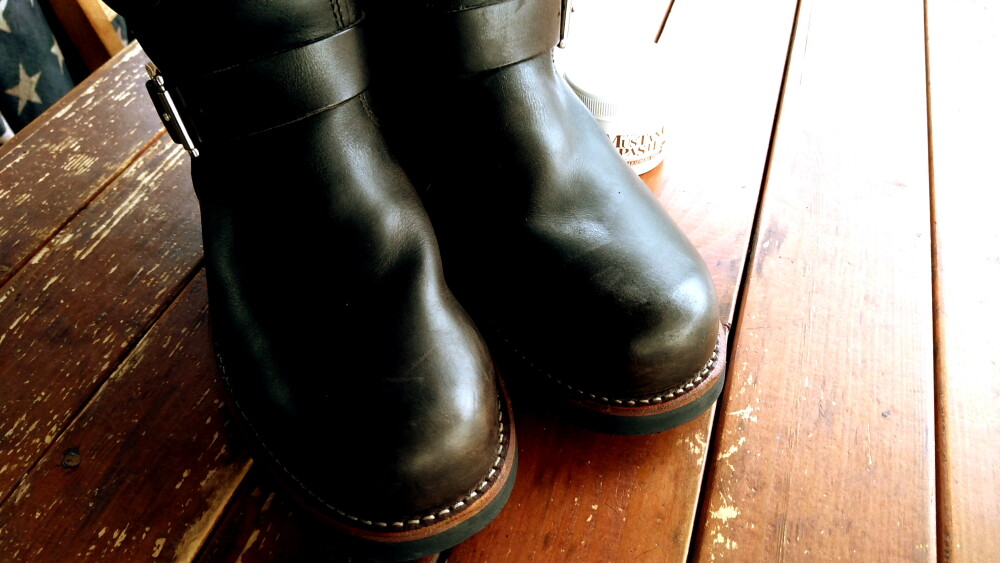 2026年01月08日(木)・・・エンジニアブーツにマスタングペーストを塗ってみました ここしばらく、革の手入れを勉強していました。 で、その第一弾として黒さが薄れてきたエンジニアブーツを選びました。 右足のつま先から、指先でマスタングペーストを擦り込んでいきます。 右足のほうが完成しました。 左、スタートです。 完成です。 このあと数日空けて、コロニル1909の黒を塗る予定です。