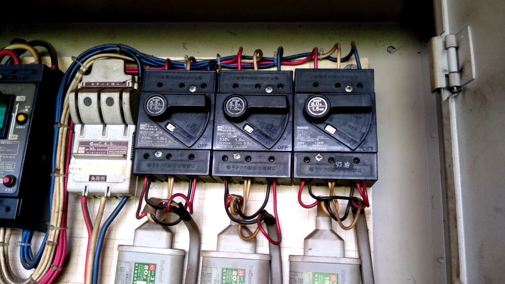2025年04月04日(金)・・・灯油計量器、故障原因はブレーカー 朝1番に、灯油の計量器が動かなくなりました。 Ⅴベルトを交換しても反応なしなので、スタンドサービスさんにきてもらいました。 1時間診た結論は、なんとブレーカーの故障とのこと。 増田電機さんに来てもらい、スタンドを1時閉店して交換してもらいました。