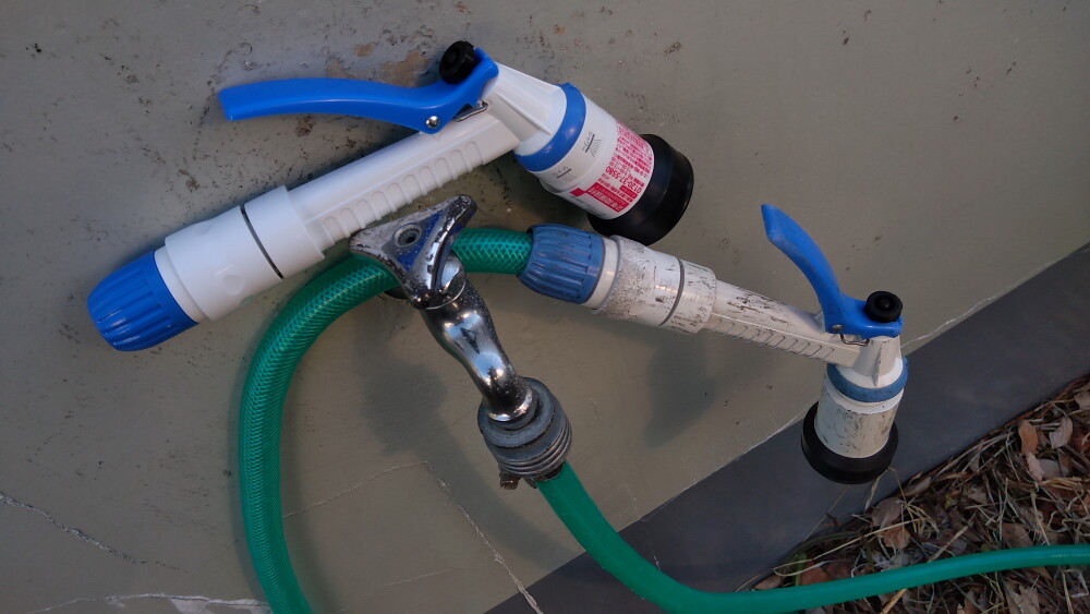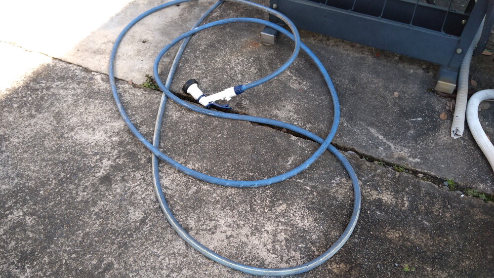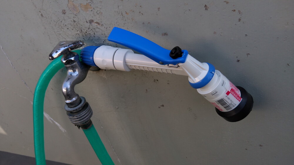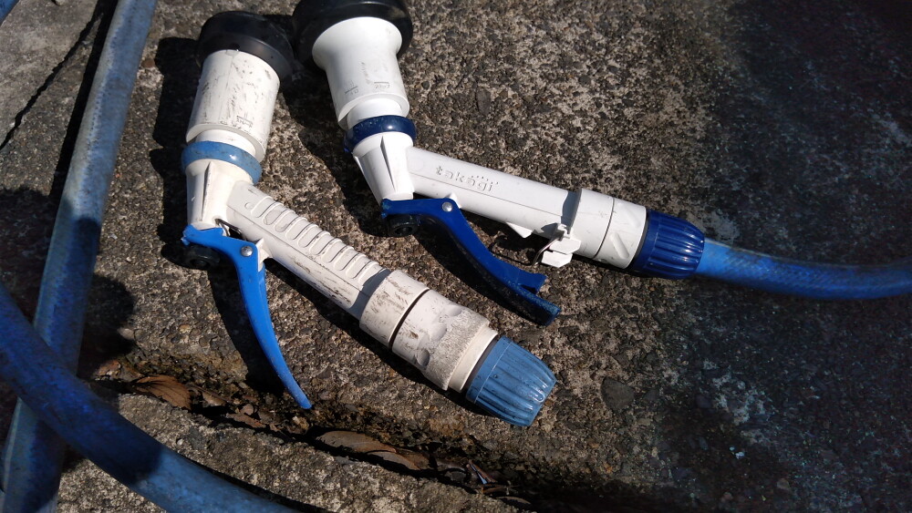 2025年03月01日(土)・・・西側のホースも交換しました 西側の洗濯機横の散水ホースとノズルも、へたってきたので交換することにしました。 散水ノズルはいつも使っているやつよりワンランク下のを使っていたのですが、 安物買いの銭失いで、まだそれほど経っていないのに漏れ始めました。 散水ホースはこのまえ買ったのと同商品、ノズルは元に戻してワンランク上です。 新しいノズルは、よく使う西側の古いノズルと交換しました。 一見新品に見える西側の散水ノズルは、西の古いノズルと交換します。