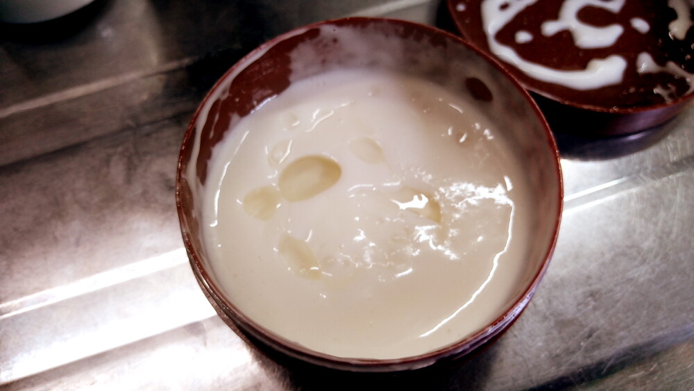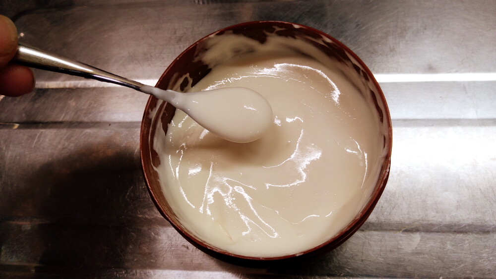 最初のクリームを混ぜてるあいだに冷めたので、もう一度湯煎しました。