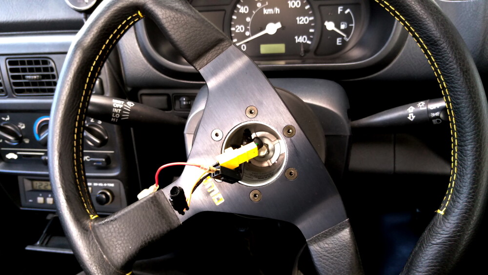 2024年11月24日(日)・・・ボスってこんなに柔いの? ステアリング位置が少しズレていたので、約1時間ほどかけて微調整しました。 ところが最後に重大ミス・・・緩めを意識して締めていたのですが、最後の本締め でほんの少しだけ強めにボスを固定しているナットを締めたら・・・ 「ミシ!」 後でレビューを隅まで読んでみたら、トルクレンチで規定の30ニュートンで締めても ボスが割れた例もあるそうです。 ひび割れる音が出た瞬間で締めるのをやめたので、多分大丈夫だとは思うのですが、 万一用にしばらく安価なボスを探し続けようと思います。