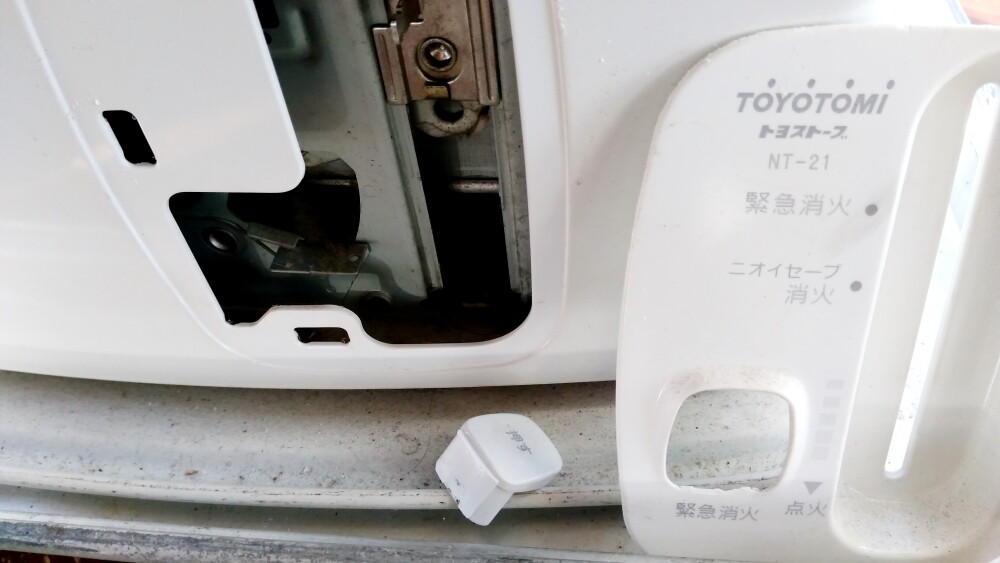 2024年11月29日(金)・・・ストーブ、壊れた? 朝一、ストーブを点けようとしたら何か調子が悪いので停止スイッチを押したら・・・ バキッ って音とともに、スイッチが折れてしまいました。 いよいよ買い替えかとも覚悟したのですが、駄目元で構造を調べる事にしました。 まず、操作部のパネルを外しました。 ここを押すと、停止するみたいです。 操作部のパネルを元に戻します。 何とか、ストーブは復活してくれました。