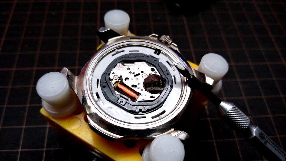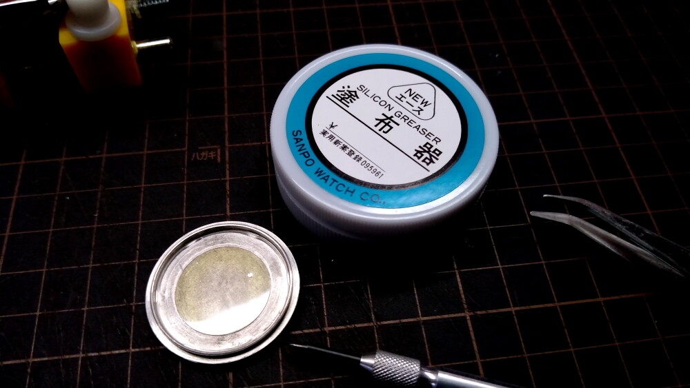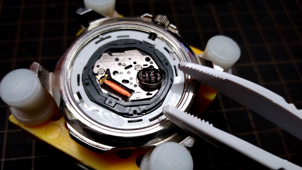 2024年11月28日(木)・・・マルボロウォッチ、復活しました 電池が到着したので、いよいよ電池交換スタートです。 裏蓋を外し、アルコールを浸した綿棒で綺麗にしました。 古い電池は、バネ棒外しで外しました。 新しい電池は、プラスチック製ピンセットでセットします。 裏蓋パッキンを外します。 塗布器で、シリコンを塗ります。 パッキン、セット完了です。 しっかり裏蓋を締めます。 最初は動かなかったけど、もう一度ばらして電池の接点に接点復活スプレーを 吹いたら、動き始めてくれました。