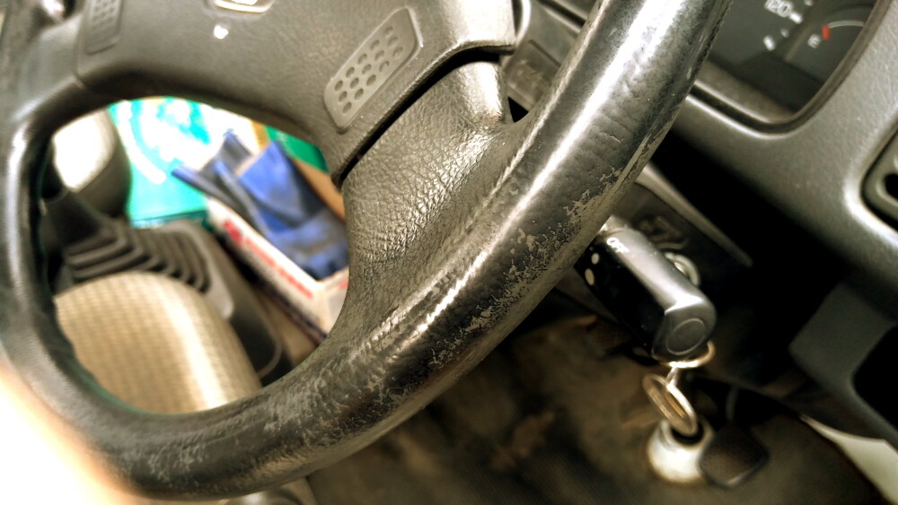 2024年11月26日(火)・・・灯油ローリーにハンドルカバーを付けました うちで1番走行距離が出ている、灯油ローリー。 ハンドルも痛みが目立っているので、HA7につけていたハンドルカバーを 付けることにしました。