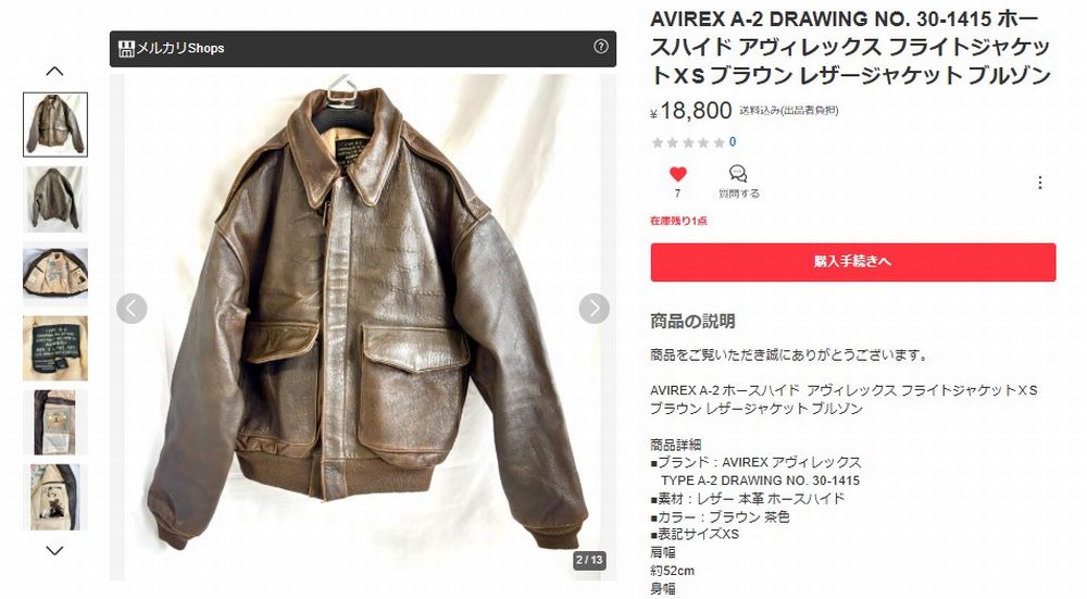 2025年12月26日(金)・・・AVIREX A-2 XS、購入 通勤用にポケットがあるA-2が欲しくなったので、探していたらこれを見つけました。 流石にホースハイドはないとは思いましたが、値引きもして頂いたので購入することに しました。