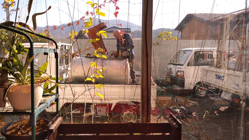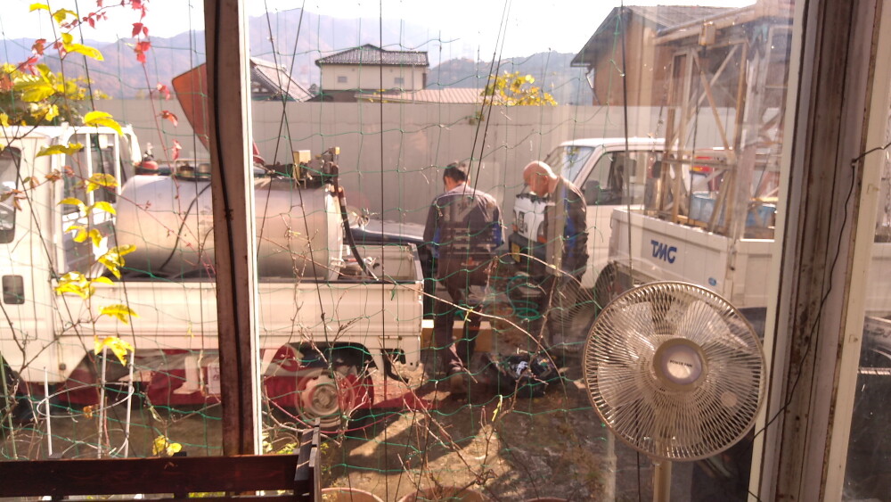 完全に壊れた灯油ローリー、モーター交換の大手術で完全復活です。
