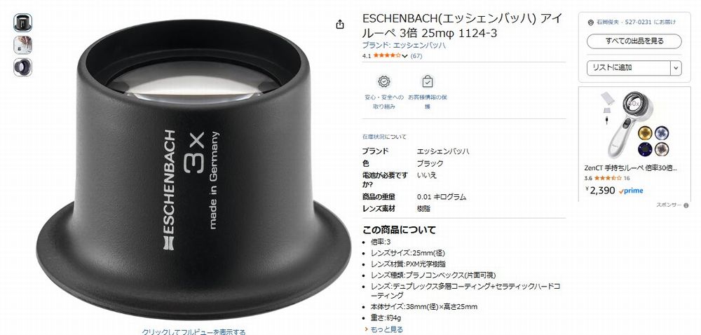 2025年10月01日(水)・・・キズミ、購入 前から欲しかったエッシェンバッハのキズミをAmazonでみつけました。 3倍の方が向いていそうでしたが、Amazonでは売り切れのようです。 やっと見つけたこれは、何故か割高・・・ でも、ヨドバシ.comで見つける事に成功しました。