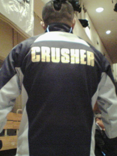 クラッシャー山田さんと一緒にパンクラスに崇太郎さんの応援!「よぅ!」山田さんは先日のPRIDEジャージ川尻さんバージョンで来てます。ゲンカツギだそうです。目立ちます……。「よぅ!」売店顔見知り。「よぅ!」チケット確認の人も顔見知り。さすがは100回をゆうに越えるホール来場数を持つ男。控室でも「どうも!」「お疲れ様!」「お世話になってます!」顔広いなぁ……。