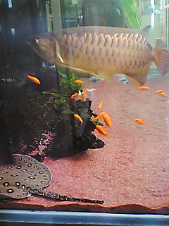 メダカはグッピーかもJBスポーツクラブは綾瀬駅に隣接するサンポップというビルの中にあります。一階に最近水槽が設置されて、なーんか癒されるから練習後によくポケーッと眺めている。最初はアロワナ1匹だけだったのに、寂しいからか、豹柄のエイが加わった。コイツはあまり動かない。さらにメダカがプラス。そして極めつけに金魚たくさん。しかもオランダシシガシラみたいな派手なヤツじゃなくて、縁日にいるようなノーマル金魚。お洒落な水槽だったのにどんどん家庭的に……。