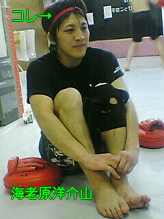 パラエストラ松戸に夜練習。海老っコちゃん(プロシューター)がサッカー選手みたいなのを頭につけてた。