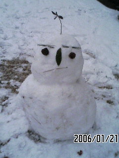コンビニへの道すがら二回ほどすっ転んだ。ビテイコツが長いから痛い~。モウコハンができてしまった。さすがに写メは撮れないので、友達から届いた雪ダルマをどうぞ。